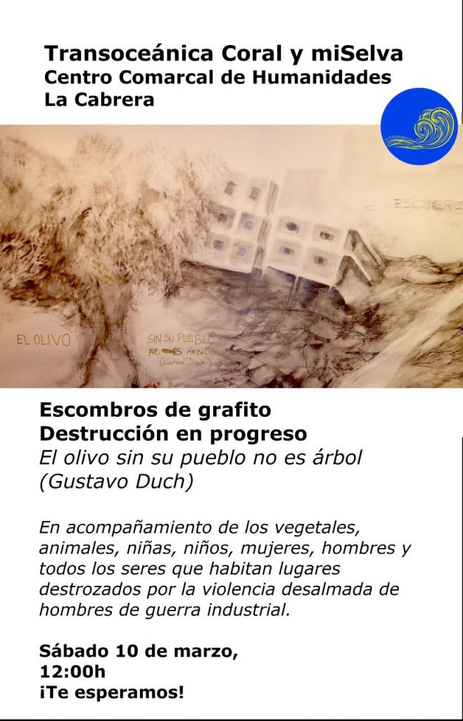 Este 10 de Enero a las 12h el coro estará performando con cantos y poemas palestinos y paisajes en diálogo con las obras de la artista plástica Patricia Fesser en el Centro Comarcal de Humanidades. Clausuramos así su exposición.